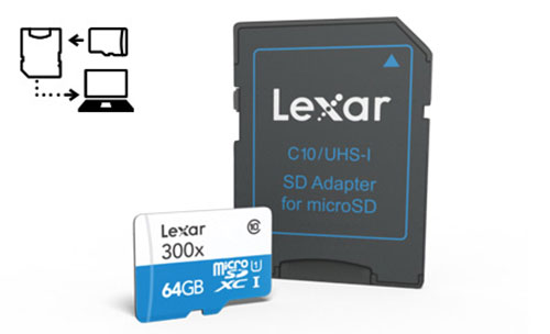 Les cartes Lexar micro SD 300x sont fournies avec un adaptateur SD pour un transfert facile entre vos différents périphériques