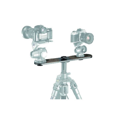 Plateforme double permettant de fixer deux appareils photo (ou 2 rotules) à 35 cm l'un de l'autre sur la colonne centrale d'un trépied